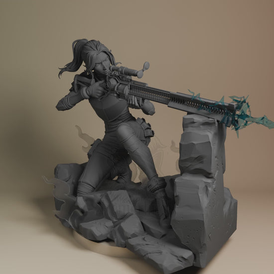 Caitlyn from Arcane as a 3D printed resin figure by Bulkamancer — unpainted 16K print with optional transparent FX, ready to assemble and paint.
