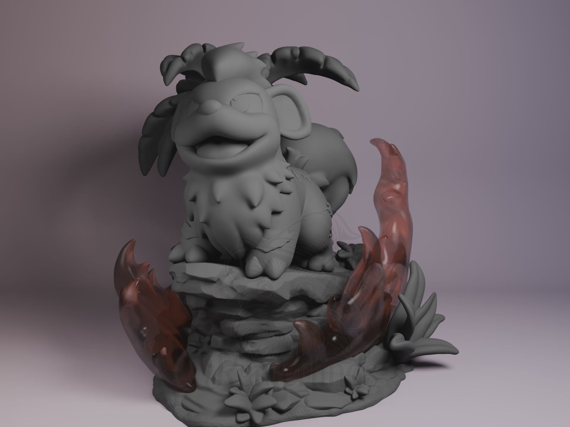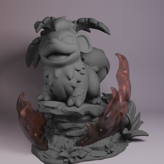 - Resin-printed model of Chibi Growlithe on rocky base with flame effects