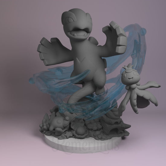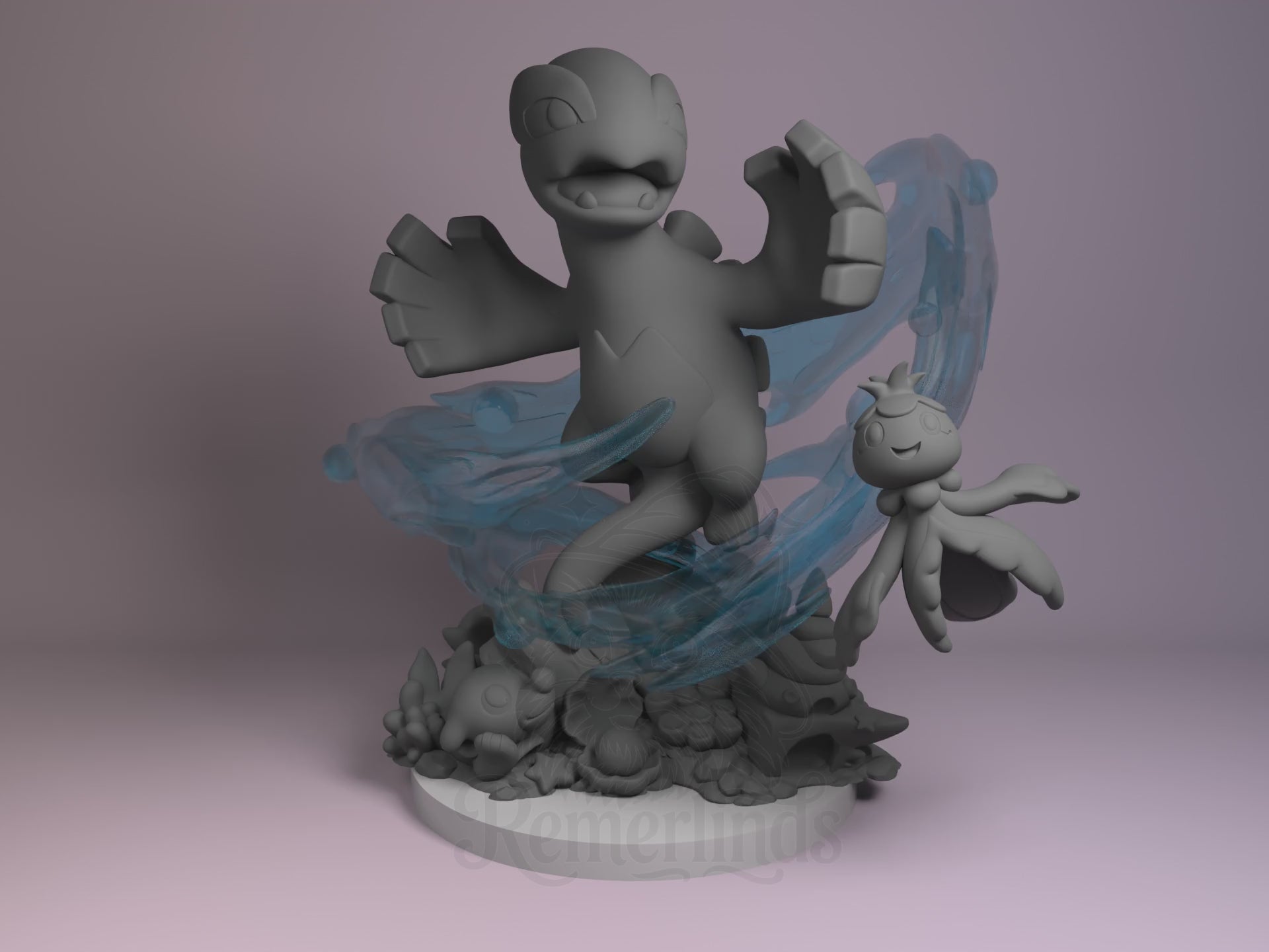 - Resin-printed model of Chibi Lugia surrounded by swirling water effects