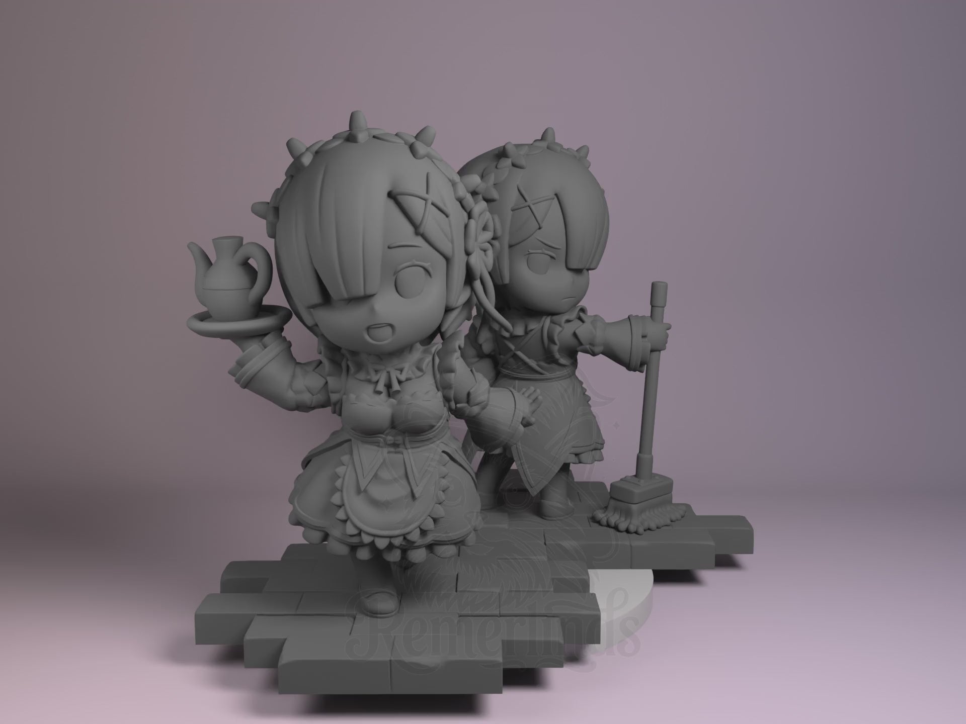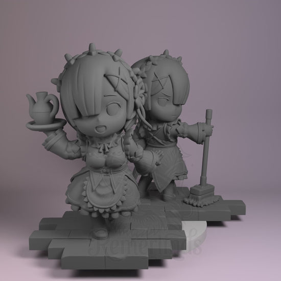 Chibi – Rem and Ram (Chibi by Nomnom Figures) – 3D printed resin figure