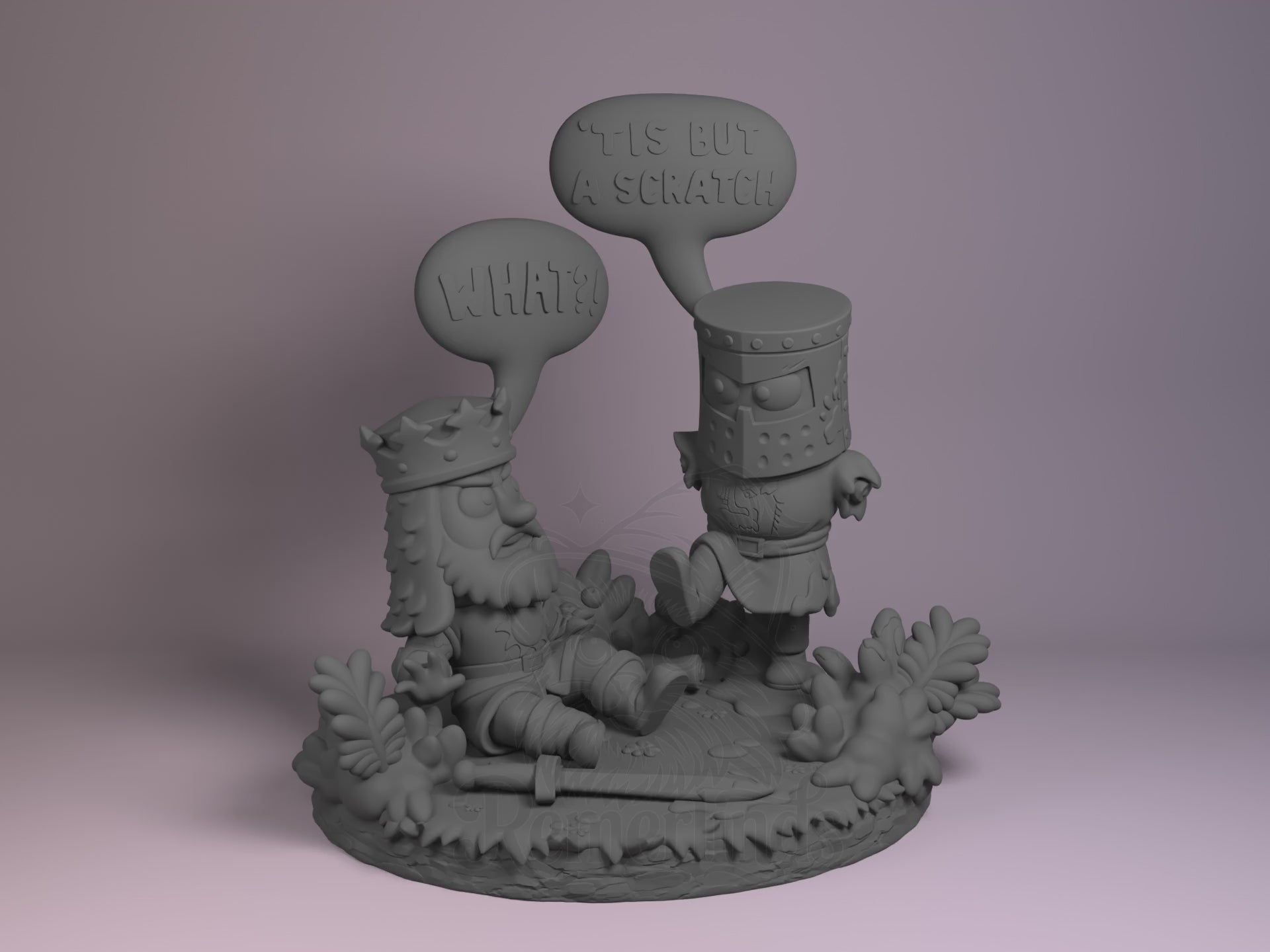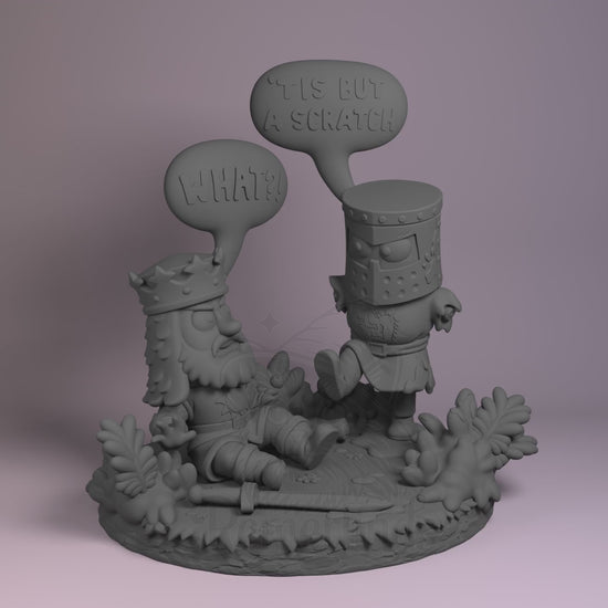 - Resin-printed model of The Black Knight and King Arthur diorama with dialogue bubbles