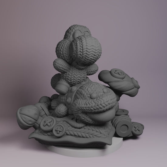- Resin-printed model of Chibi Yoshi posed atop a yarn-textured base with stitched details