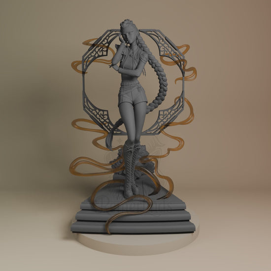 A 16K-detailed sculpt of Rumi from KPop Demon Hunters, posed elegantly within a demonic frame and surrounded by swirling energy ribbons. The dynamic design and ornate base make this unpainted resin kit a striking display piece for painters and collectors.